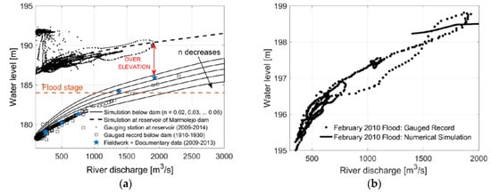 Figure 5a). The rest of floods in the period 1912–2009 were less severe and exhibited flow depths lower than 10.6 m with local river discharges smaller than 1577 m