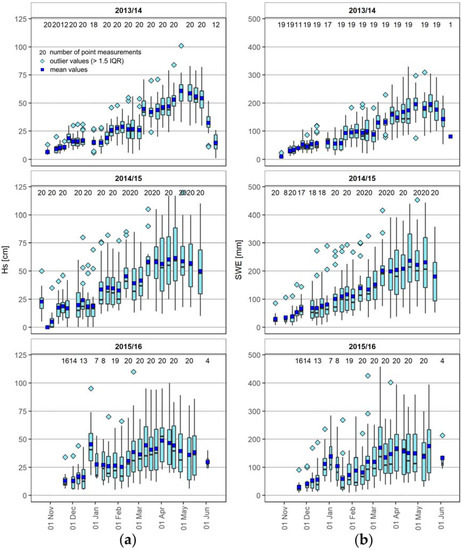 - Snow Measurement Guidelines for National Weather Service Surface Observing Programs. Available online: http://www.nws.noaa.gov/os/coop/reference/Snow_Measurement_Guidelines.pdf (accessed on 14 July 2017).