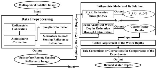 The flowchart of the implementation of the proposed bathymetric method.