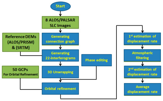 Applied processing workflow in this study using the DInSAR/SBAS module.