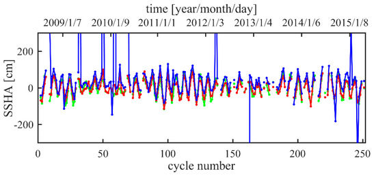 In order to validate the quality of the range estimation, the along-track SSHA is calculated as follows: