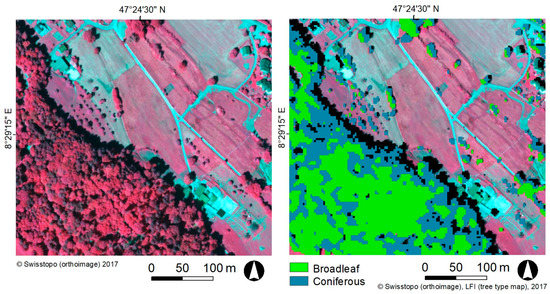 Furthermore, the proposed method was optimized in order to be suitable for European temperate mixed forests within a complex topography. In this paper, we demonstrate a novel approach to deriving a countrywide tree type map with a spatial resolution of 3 m that (i) uses digital aerial imagery and a RF classifier; (ii) is highly automated and reproducible, minimizes computation time, and produces high model and prediction accuracies; and (iii) uses digitized polygons of broadleaved and coniferous trees for model adjustment; and (iv) independent NFI data (aerial photo interpretation) for validation. The tree type map complements the existing spatially explicit countrywide data sets, i.e., the Vegetation Height Model (VHM) [30] and the forest cover map [3] of the Swiss NFI. It is superior to the existing tree type maps regarding level of detail, accuracy and being up-to-date. It also supports forest management demands by providing detailed information on forest composition at the stand level.