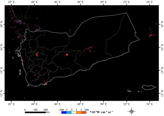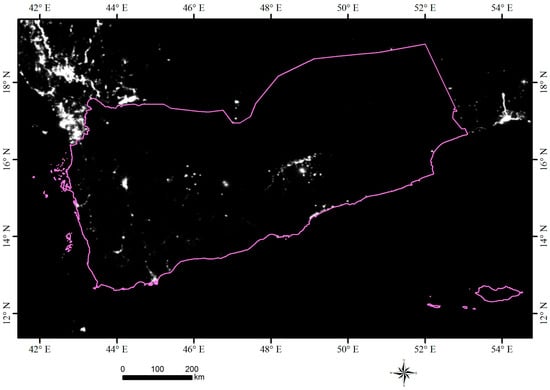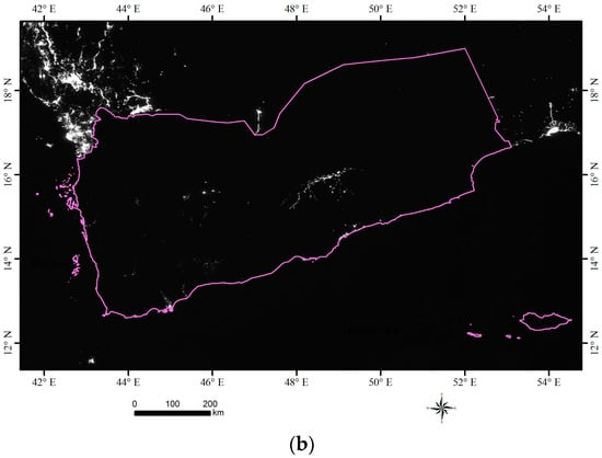 - Visible Light at Night over Yemen as of 21 July 2015. Available online: http://www.unitar.org/unosat/node/44/2243?utm_source=unosat-unitar&utm_medium=rss&utm_campaign=maps (accessed on 2 May 2017).
