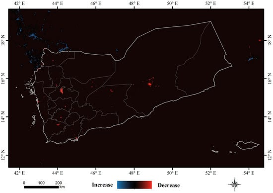 - From spatial pattern analysis, the areas of decline were found to be mainly located in Sana’a, Dhamar, Ibb, Ta’izz, ’Adan, Shabwah and Hadramawt. The validation results show that the nighttime light declines in western cities and eastern cities are due to the damage of urban infrastructure and decreased oil exploration, respectively. In addition, a nighttime curfew policy and electrical blackouts are also key factors in the decline of nighttime light in Yemen.