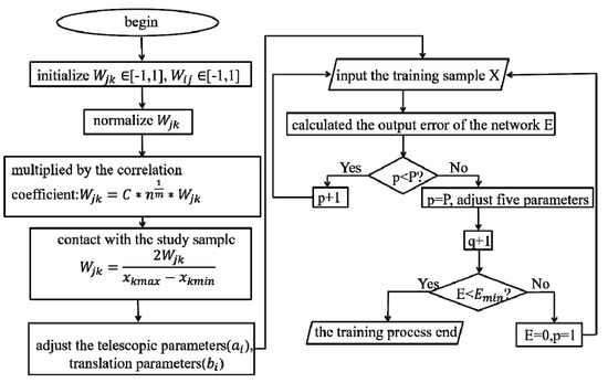 Flow chart for the training process of the wavelet neural network.