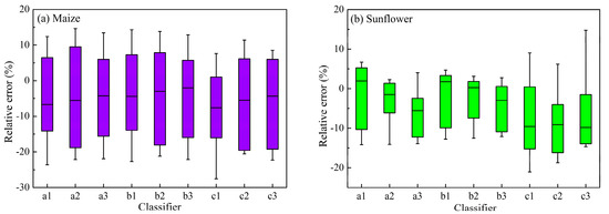 Figure 7. Performance of different classifiers for maize (a) and sunflower (b).