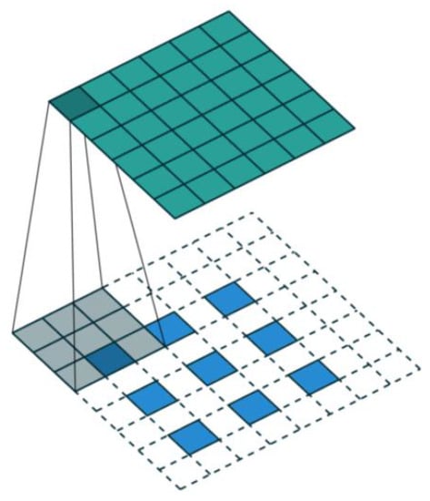 Figure 3. The first step is to insert zeros between the consecutive inputs according to the resolution requirements. After that, an operation similar to convolution is conducted, that is, defining a kernel of an appropriate size and sliding it with a stride to get a higher resolution output compared with the inputs. Since such an operation simply reverses the forward and backward passes of convolution, up-sampling with deconvolution is able to be performed in-network for end-to-end learning by backpropagation.