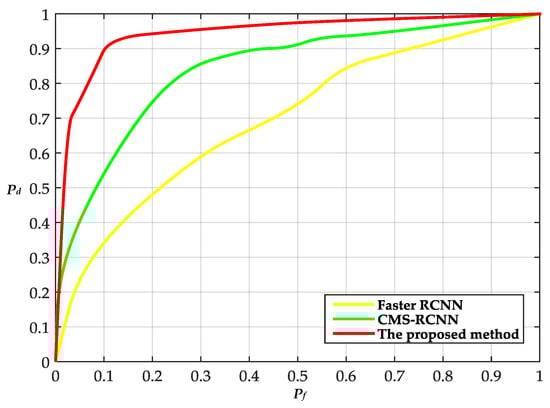 , the proposed method has the lowest false alarm probability. Therefore, the proposed method performs better than Faster RCNN and CMS-RCNN.