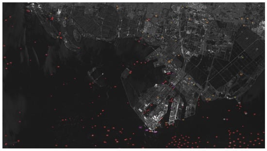 Since the proposed method omits sea–land segmentation which traditional methods required, it provides the possibility for the network to detect ships nearshore, where traditional methods cannot perform well because of the limited accuracy of sea–land segmentation. The equal treatment of land and sea area also brings some undesirable false alarms on the land as shown in