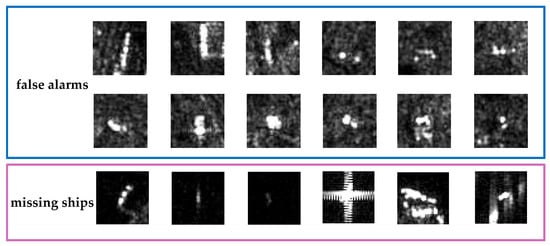 Figure 9. Visually, most of them are extremely similar to true positive targets. That is, they are brighter than their context and are shaped similar to ships, which means that the network values the visual features. Those kinds of false alarms are also hard to rule out by some hand-crafted methods. Therefore, some additional discrimination networks need to be trained, aimed at those false alarms and ships.