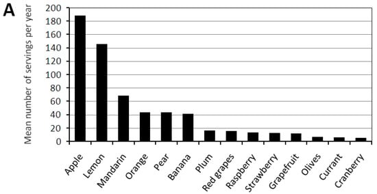 The dietary intake of fruit and vegetables was assessed with a self-constructed questionnaire consisting of 22 questions. The questionnaire inquired about gender, age, body mass, height, place of residence, period of dialysis, comorbidities, and lifestyle i.e., level of physical activity, amount of sleep, and dietary supplement use. Patients were asked about overall average fruit and vegetables consumption frequency in the preceding year. They selected the most appropriate answer among the following: >2 portions per day, 1–2 portions per day, a few portions per week, <1 portion per week. We have asked about fruit and vegetables processing, including cooking, cooking with double-water change, baking, etc. Moreover, patients were asked about the intake of particular 13 fruits and 14 vegetables most frequently used in middle-eastern Europe, including those with high antioxidant capacity. The possible answers to the detailed questions were the following: never, a few times per year, 1–3 times per month, a few times per week, once a week, once a day. Based on the answers, we calculated the number of portions of the particular fruit and vegetables per year.