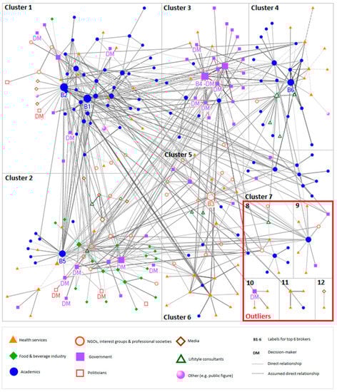 Through this social network analysis, we identified a diverse network of actors involved with shaping public opinion and public policies on obesity and diabetes in New Zealand. Our results show that the network is partially disintegrated even though it has a manageable size. This implies a need for improved communication and networking activities among all interest groups. The six identified brokers could play a key role in this, as they are in the position to facilitate discussion, improve information flow, and foster collaboration.