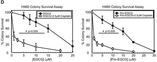 3.3. EGCG and Pro-EGCG Enhance Cisplatin Sensitivity in Lung Cancer Cell Lines In Vitro