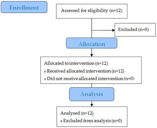 In November 2017 a total of 12 subjects were recruited via BioTeSys’ volunteer database and included, as shown in Figure 1. Overall, 22 subjects were pre-screened for eligibility and of those 12 invited for the screening visit. All 12 screened volunteers (6 women and 6 men) were included and completed the study successfully without considerable protocol deviations. The study terminated in December 2017.