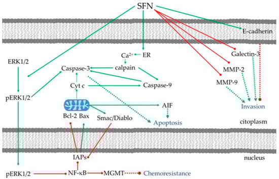 Therefore, the use of a pleiotropic agent that may affect specific cancer cell features could be a successful strategy to fight GBM [81]. Here, we would like to summarize the effects of SFN focusing on pro-apoptotic, anti-invasion, anti-proliferative, and anti-chemo/radioresistance activities of this ITC in GBM treatment.