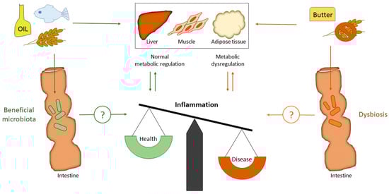 - Candido, F.G.; Valente, F.X.; Grzeskowiak, L.M.; Moreira, A.P.B.; Rocha, D.; Alfenas, R.C.G. Impact of dietary fat on gut microbiota and low-grade systemic inflammation: Mechanisms and clinical implications on obesity. Int. J. Food Sci. Nutr. 2018, 69, 125–143. [Google Scholar] [CrossRef] [PubMed]