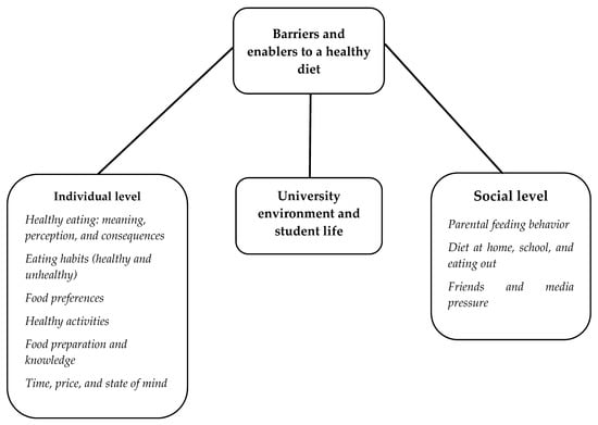 Summary of the main barriers and enablers to a healthy diet among college students (n = 35).