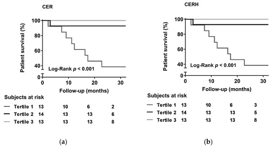 The endpoint for prospective analyses was all-cause mortality. Prospective analyses were performed using Kaplan-Meier curves and Cox regression models. Kaplan-Meier curves were made for sex stratified tertiles of CER and CERH. Cox regression analyses were employed to investigate the association of both CER and CERH with all-cause mortality, in which adjustments were made for potential confounders including age, sex, body mass index (BMI), BSA, and systolic blood pressure. Cox regression models were built in a stepwise fashion to avoid overfitting and to keep the number of predictors in proportion to the number of events.