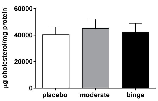 3.3. Hepatic Cholesterol Content of Mice undergoing Moderate and Binge Alcohol Consumption
