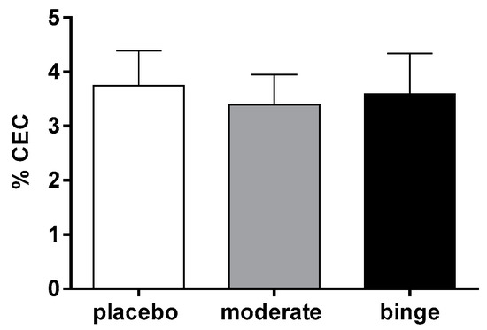 The statistical analyses were performed with Prism 6 software (GraphPad software, San Diego, CA, USA). The comparisons between placebo, moderate, and binge groups were analyzed by one-way ANOVA, followed by Tukey’s multiple comparison test between groups. A level of p < 0.05 was considered significant.
