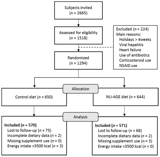 Flow chart of the recruitment process of participants in the NU-AGE dietary intervention study.
