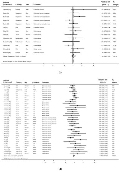 Accordingly, the need for meta-analyses that qualitatively assess individual studies to integrate recent literature on the association between total fat and individual fatty acid intake and the risk of CRC is evident. Therefore, in this study, we reviewed the available literature and summarized the results by conducting a meta-analysis of prospective cohort studies.