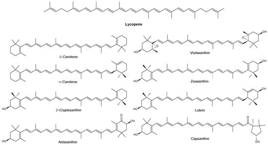 - Xavier, A.A.O.; Pérez-Gálvez, A. Carotenoids as a Source of Antioxidants in the Diet. In Carotenoids in Nature: Biosynthesis, Regulation and Function; Stange, C., Ed.; Springer International Publishing: Cham, Switzerland, 2016; pp. 359–375. Available online: http://dx.doi.org/10.1007/978-3-319-39126-7_14 (accessed on 21 June 2017).
