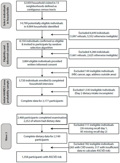 - Evans, M.; Lepkowski, J.; Powe, N.; LaVeist, T.; Kuczmarski, M.; Zonderman, A. Healthy aging in neighborhoods of diversity across the life span (HANDLS): A longitudinal, epidemiologic, urban study of health, race, and socioeconomic status. Ethn. Dis. 2010, 20, 267–275. [Google Scholar] [PubMed]