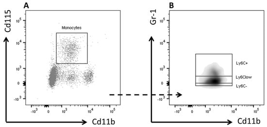 Gating strategy. Gating strategies for the analysis of (A) granulocytes, total monocytes; and (B) Ly6C+, Ly6Clow, and Ly6C- monocyte subsets in whole blood.