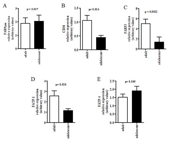 - Rodríguez-Cruz, M.; González, R.S.; Maldonado, J.; López-Alarcón, M.; Bernabe-García, M. The effect of gestational age on expression of genes involved in uptake, trafficking and synthesis of fatty acids in the rat placenta. Gene 2016, 591, 403–410. [Google Scholar] [CrossRef] [PubMed]