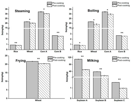 Lu, X.; He, Z.; Lin, Z.; Zhu, Y.; Yuan, L.; Liu, Y.; Yin, X. Effects of Chinese Cooking Methods on the Content and Speciation of Selenium in Selenium Bio-Fortified Cereals and Soybeans. Nutrients 2018, 10, 317. https://doi.org/10.3390/nu10030317
