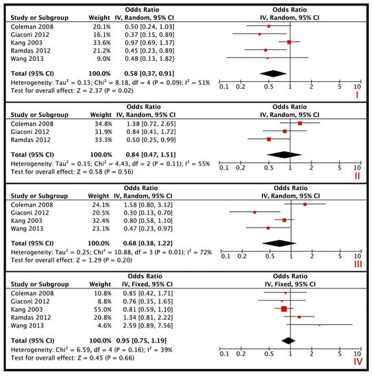 - Higgins, J.P.T.; Thompson, S.G.; Deeks, J.J.; Altman, D.G. Measuring inconsistency in meta-analyses. BMJ 2003, 327, 557–560. [Google Scholar] [CrossRef] [PubMed]