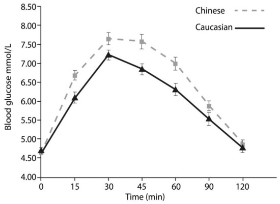 6]. Despite evidence alluding to the significance of elevated post-prandial glucose levels in healthy individuals, there has been greater focus on examining individuals with diabetes. Therefore, blood glucose responses in seemingly healthy Chinese and Caucasian individuals needs comparison and consideration.