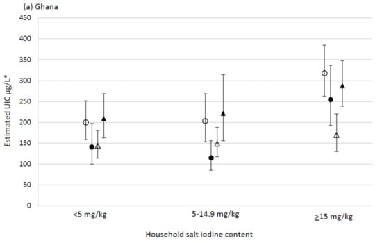 APA StyleKnowles, J., Kupka, R., Dumble, S., Garrett, G. S., Pandav, C. S., Yadav, K., Touré, N. K., Foriwa Amoaful, E., & Gorstein, J. (2018). Regression Analysis to Identify Factors Associated with Urinary Iodine Concentration at the Sub-National Level in India, Ghana, and Senegal. Nutrients, 10(4), 516. https://doi.org/10.3390/nu10040516