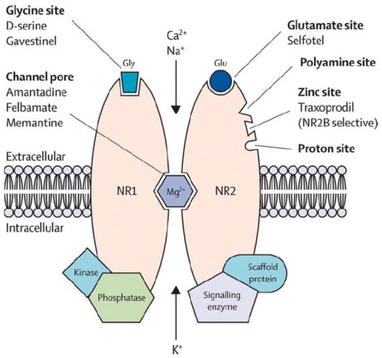 - Kalia, L.V.; Kalia, S.K.; Salter, M.W. NMDA receptors in clinical neurology: Excitatory times ahead. Lancet Neurol. 2008, 7, 742–755. [Google Scholar] [CrossRef]