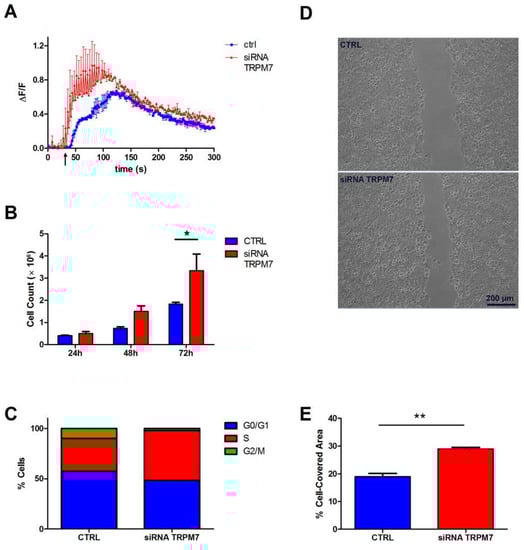 3.2. Contribution of TRPM7 to Colon Cell Functions