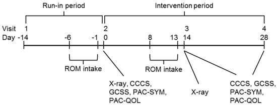 Study activities. ROM, radio-opaque marker; CCCS, Cleveland Clinic constipation score; GCSS, global constipation symptom score; PAC-SYM, patient assessment of constipation—Symptoms; PAC-QOL, PAC—Quality of life.