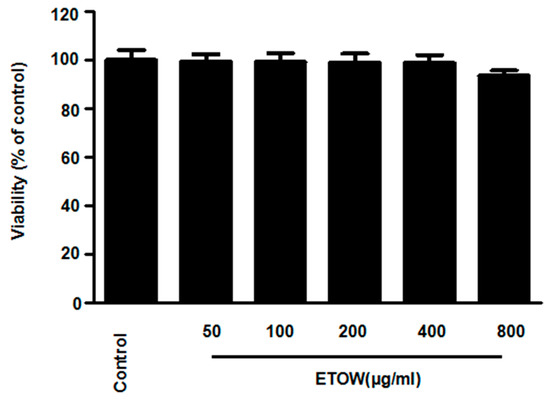 3.3. Effects of ETOW on Glutamate-Induced Cytotoxicity and Reactive Oxygen Species Production in HT22 Cells