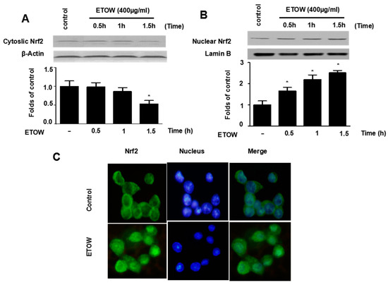 3.5. Effects of ETOW on Nrf2 Translocation in HT22 Cells