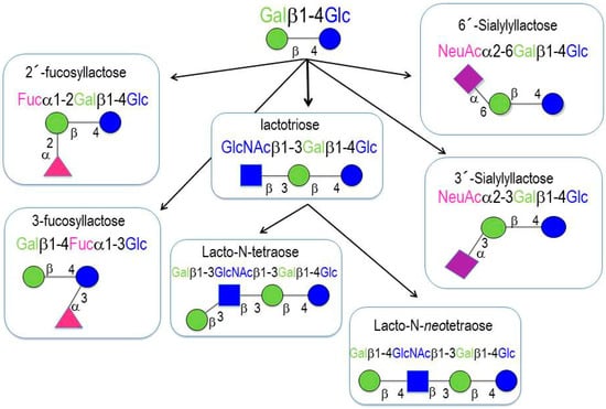 - Bode, L. Human milk oligosaccharides: Every baby needs a sugar mama. Glycobiology 2012, 22, 1147–1162. [Google Scholar] [CrossRef] [PubMed]