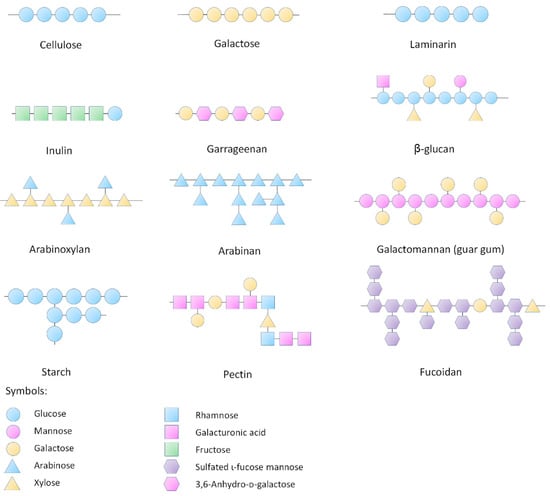 - Shang, Q.; Jiang, H.; Cai, C.; Hao, J.; Li, G.; Yu, G. Gut microbiota fermentation of marine polysaccharides and its effects on intestinal ecology: An overview. Carbohydr. Polym. 2018, 179, 173–185. [Google Scholar] [CrossRef] [PubMed]
