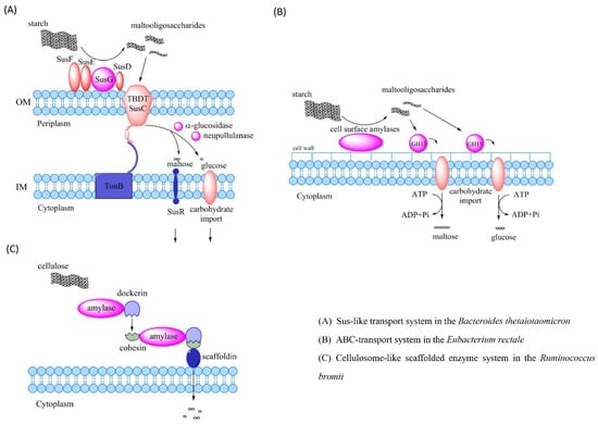 - Foley, M.H.; Cockburn, D.W.; Koropatkin, N.M. The sus operon: A model system for starch uptake by the human gut bacteroidetes. Cell. Mol. Life Sci. 2016, 73, 1–15. [Google Scholar] [CrossRef] [PubMed]