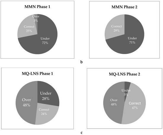 For quantitative analysis of the spot check data, the expected number of supplements was calculated based on the number of days elapsed since the last distribution, which was then compared to the actual number observed during the spot check. For the purposes of this analysis, correct consumption was defined as the actual number being no more than 2 days’ worth of supplements above or below the expected number (i.e., within two tablets or sachets for IFA and MQ-LNS, and within eight capsules for MMN). If the actual number exceeded the expected, this was considered “under-consumption”, and if the actual number was less than expected, this was considered “over-consumption”.