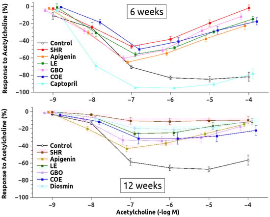 | SHR6 | pEC50 (mol/L) | Maximal Contraction (g) | Maximal Relaxation (%) | After Acute L-NAME | Maximal Relaxation (%) |