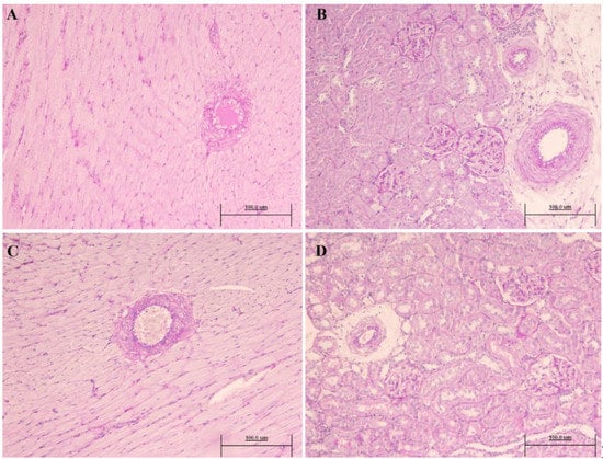 - Numaguchi, K.; Egashira, K.; Takemoto, M.; Kadokami, T.; Shimokawa, H.; Sueishi, K.; Takeshita, A. Chronic inhibition of nitric oxide synthesis causes coronary microvascular remodeling in rats. Hypertension 1995, 26, 957–962. [Google Scholar] [CrossRef] [PubMed]