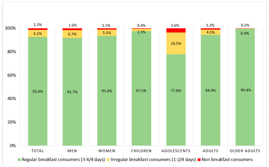 - Aranceta, J.; Serra-Majem, L.; Ribas, L.; Pérez-Rodrigo, C. Breakfast consumption in Spanish children and young people. Public Health Nutr. 2001, 4, 1439–1444. [Google Scholar] [CrossRef] [PubMed]