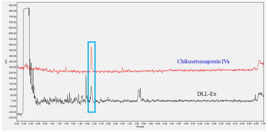 The concentration of CS-IVa in DLL was analyzed via UPLC and the retention time of CS-IVa was found to be 2.08 min (Figure 2). The calibration curve for the quantitative analysis of CS-IVa in DLL was performed at a concentration range of 125–1000 μg/mL, and the concentration of CS-IVa in dried DLL was 614 μg/g (0.0614%) and in DLL-Ex was 5400 μg/g (0.54%).