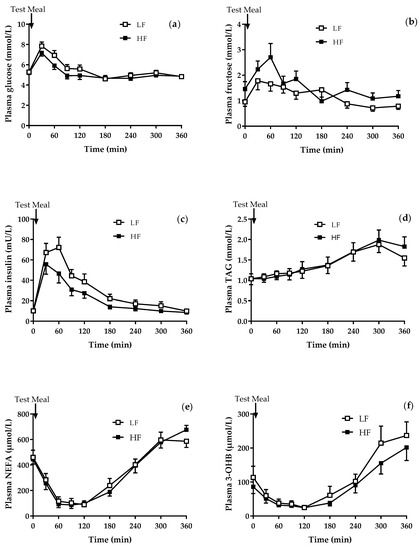 - Chong, M.F.; Fielding, B.A.; Frayn, K.N. Mechanisms for the acute effect of fructose on postprandial lipemia. Am. J. Clin. Nutr. 2007, 85, 1511–1520. [Google Scholar] [CrossRef] [PubMed]