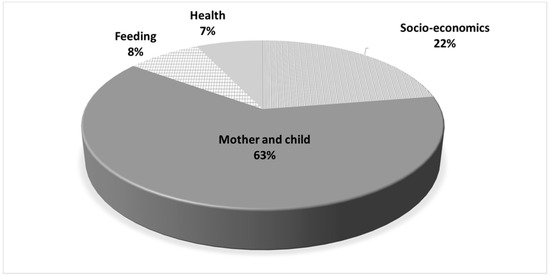 In Figure 3, we present the contribution of individual level variables to the total explanatory power of the model. The mother and child variable groups contributed 63% of the incremental pseudo R2. Socioeconomic variables accounted for 22% of the incremental explanatory power of the model whereas feeding variables and health variables contributed 8% and 7% respectively.