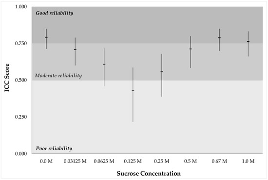 | Liking Cut-Off Scores | Sucrose Concentration (M) | |||||||
